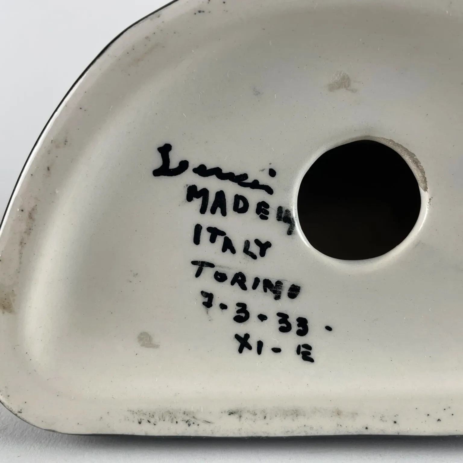 Pod podstawą znajduje się napis Lenci: MADE IN ITALY Turyn 7-3-33 – XI – IE.
