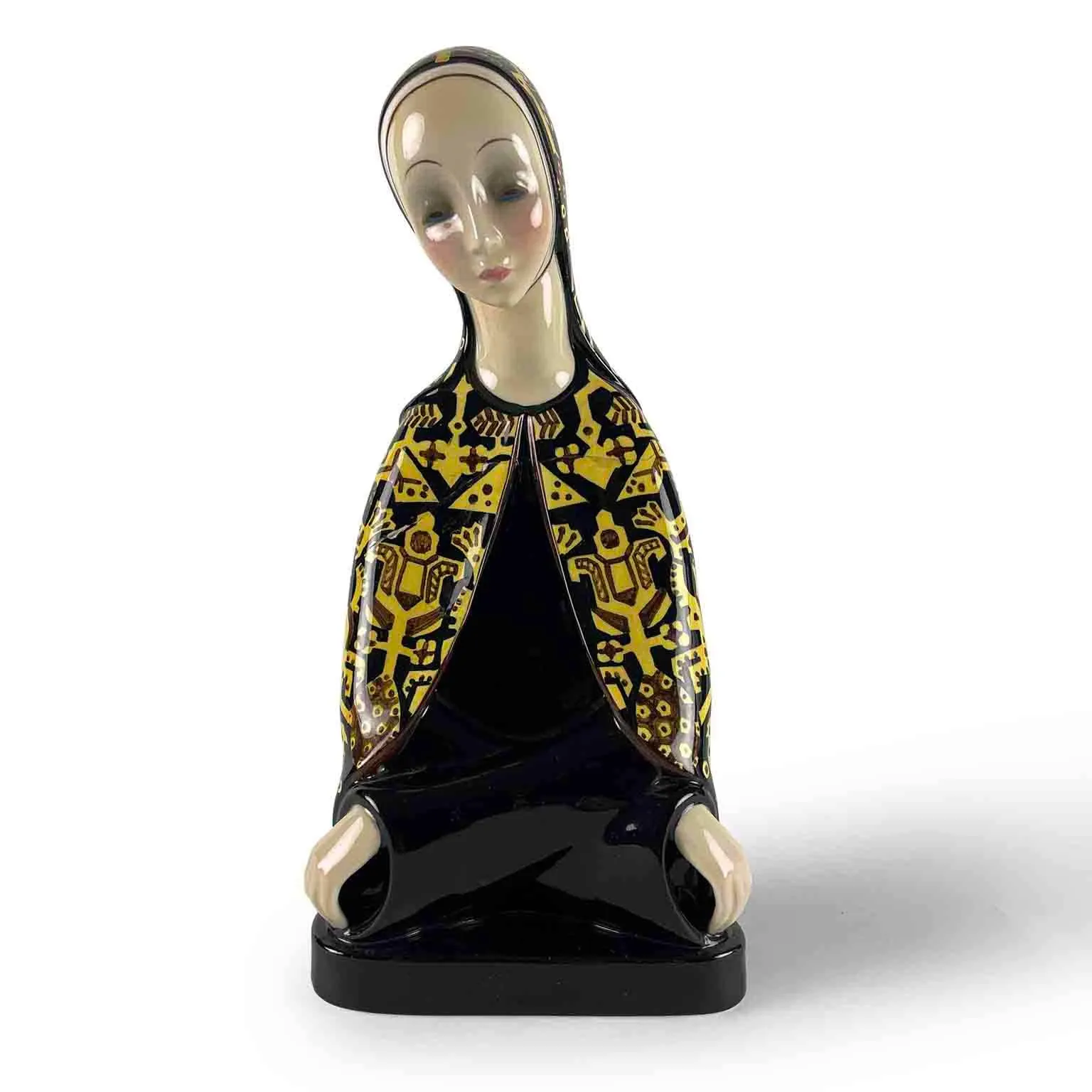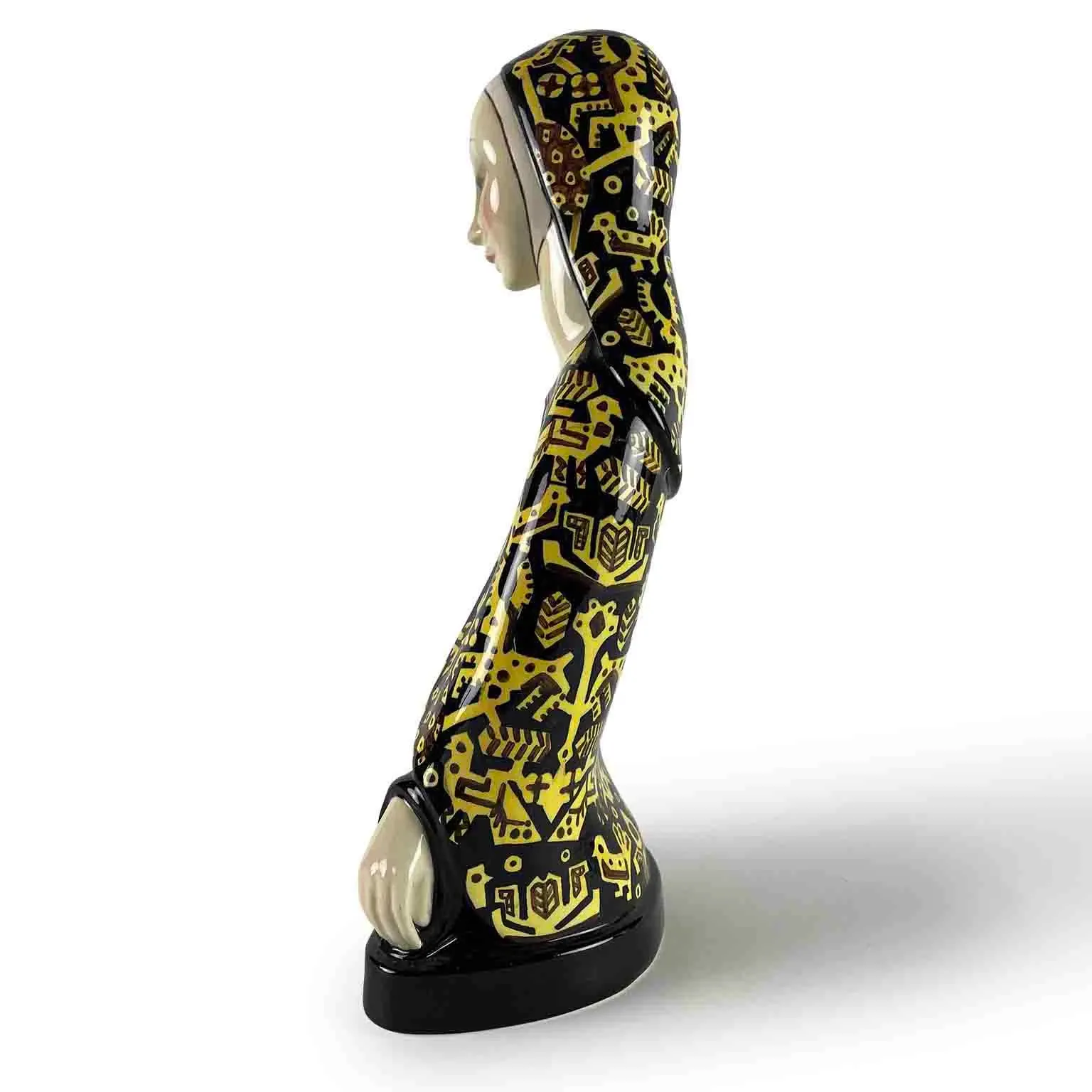 Ten model Eleny Scavini z lat 30. XX wieku to ceramiczna rzeźba w stylu art déco o zwężającej się linii i bardzo nowoczesnej polichromii. Jest w dobrym stanie, po renowacji.