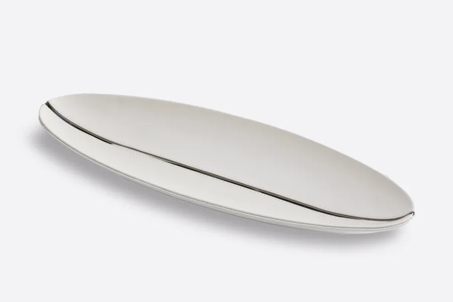 Taca Modigliani Line to efekt idealnego połączenia wysokiej jakości materiałów i nowoczesnej estetyki. Wyróżnia się obecnością dwóch prostych pasów skóry Foglizzo, które elegancko się przecinają, dodając odrobinę ciepła i luksusu, tworząc fascynujący kontrast z chłodem stali.