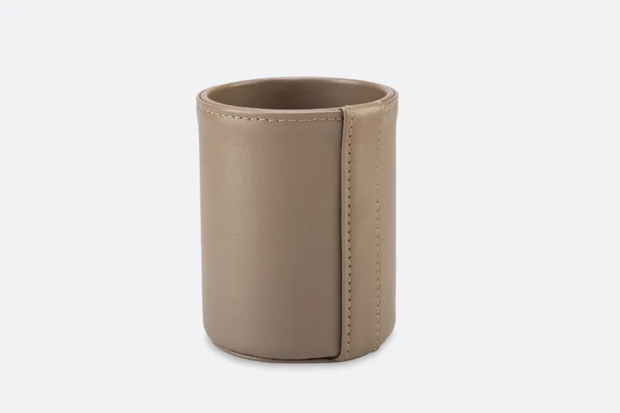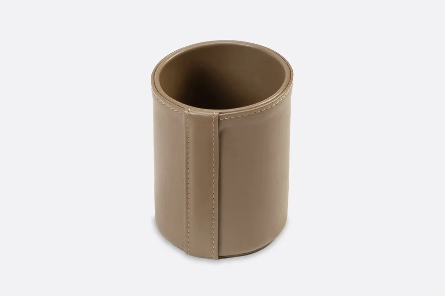 Elitarny skórzany pojemnik na długopisy w kolorze ciemnego beżu - do gabinetu