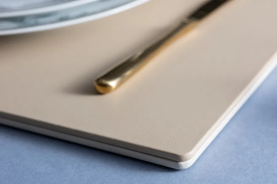 Luksusowa prostokątna podkładka na stół z najwyższej jakości skóry w kolorzach beżowego cappuccino i białym - do gabinetu