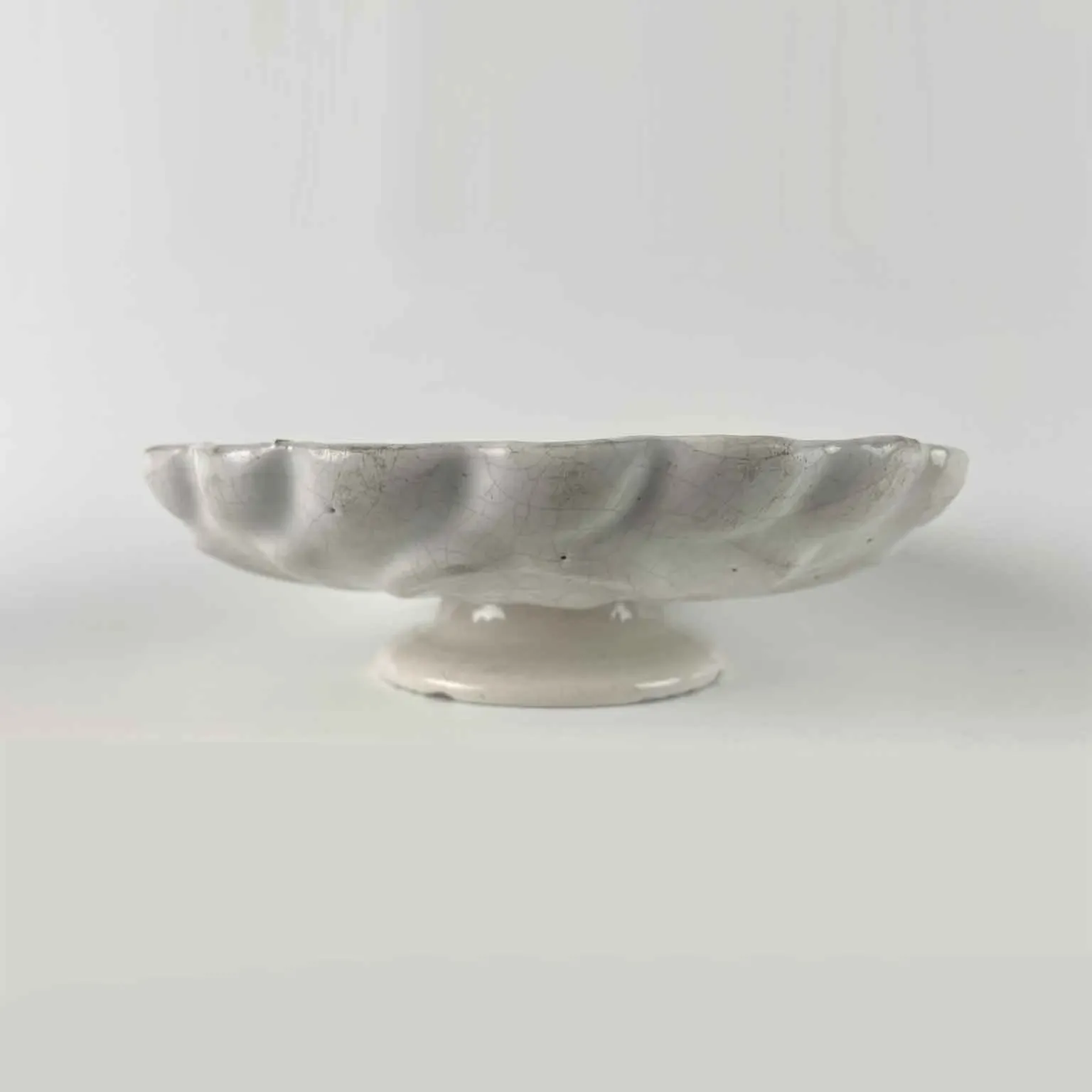 Crespina charakteryzuje się gęstą siecią drobnych pęknięć na szkliwionej powierzchni. W ceramice efekt ten często wynika z szoku termicznego lub naturalnego osadzania się szkliwa na glinie z upływem czasu. Jest to majolikowa podstawka pod stół, używana do serwowania słodyczy lub suszonych owoców, potocznie zwana crespiną (głębokie, wyprofilowane naczynie ustawione na cokole), wykonana w Derucie w XVIII wieku.