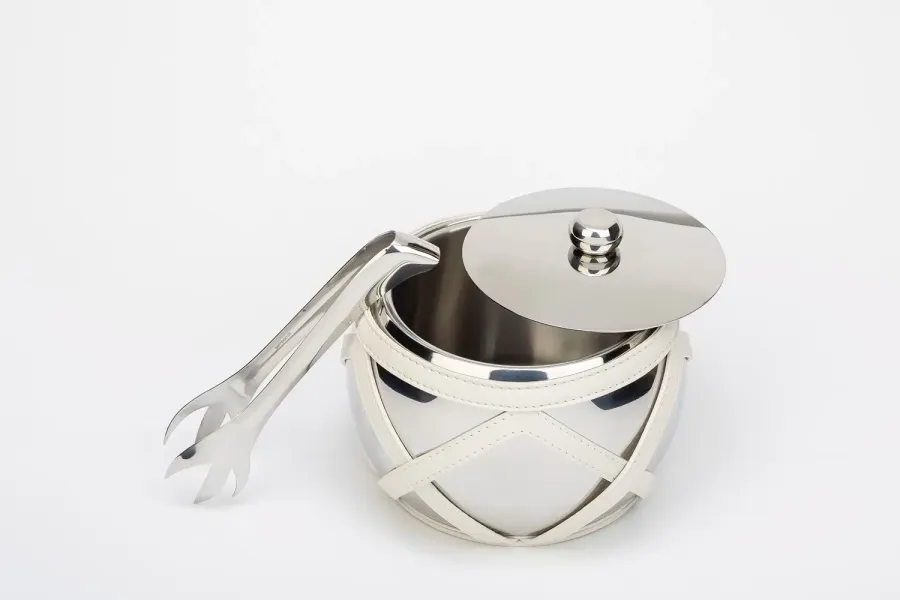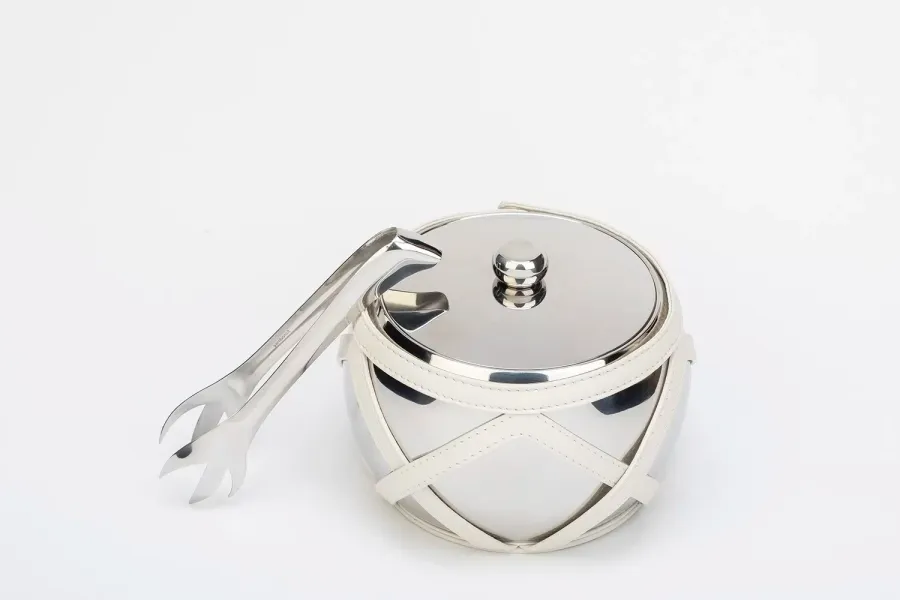 Wyjątkowe izolowane wiaderko na lód w białym skórzanym pokryciu - do kuchni