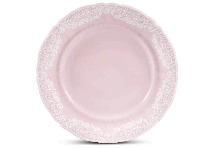 Porcelanowy talerz obiadowy w kolorze różowym z delikatnym zdobieniem - zestaw 4 sztuk – Leander